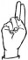 На ћирилици написано ПЕРО АРСЕНИЈЕВИЋ састоји се из 15 слова [?]. Исписано ћириличном једноручном азбуком за глувонеме: